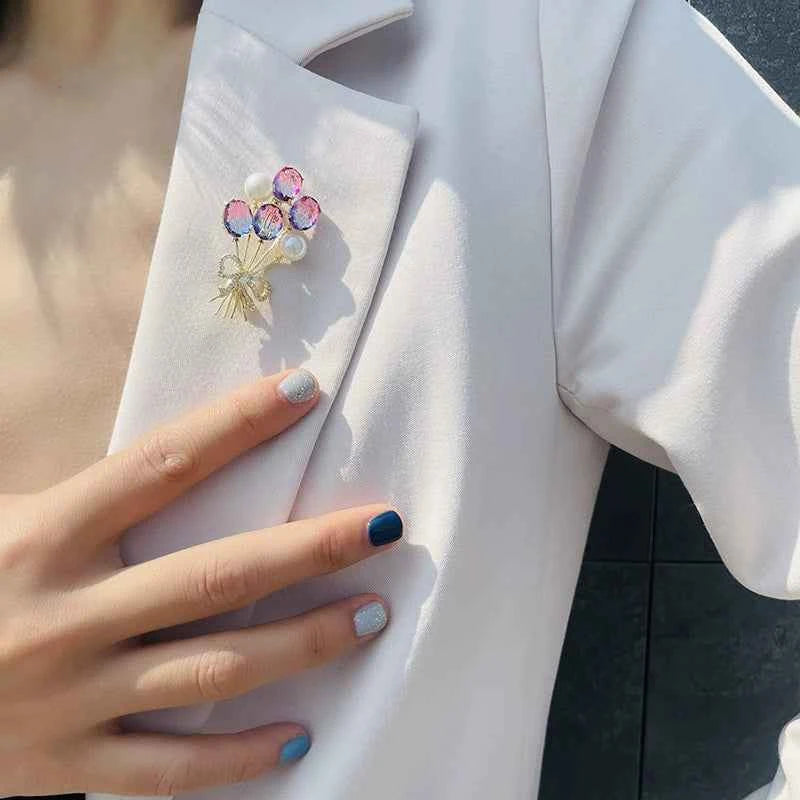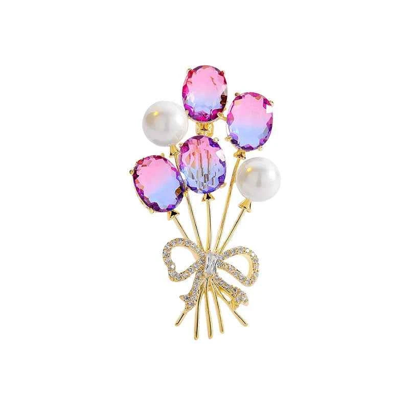Bílá brož balón s barevnou mašlí z zirkonu perlová spona