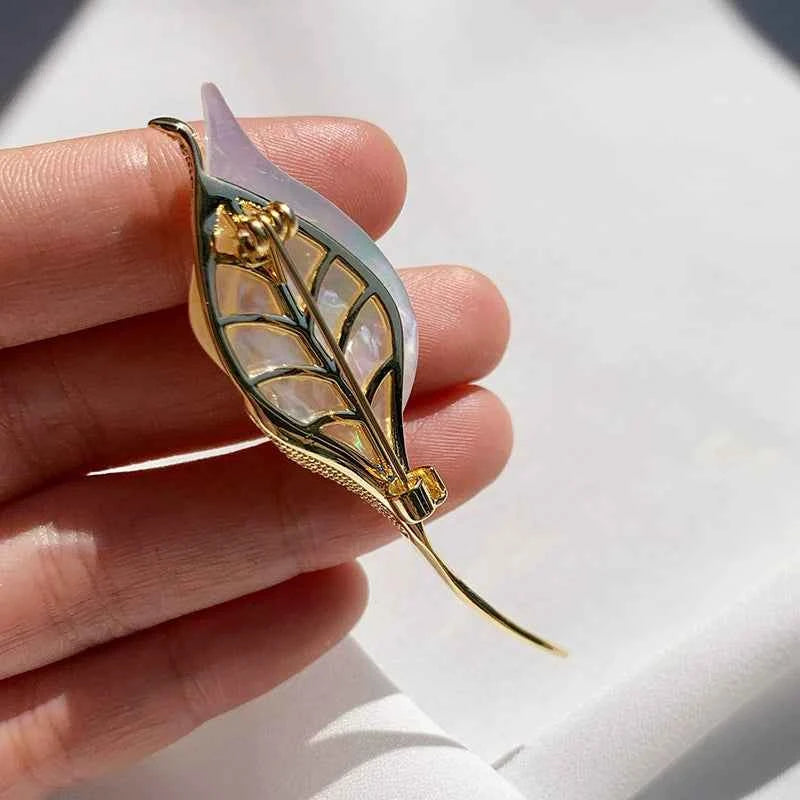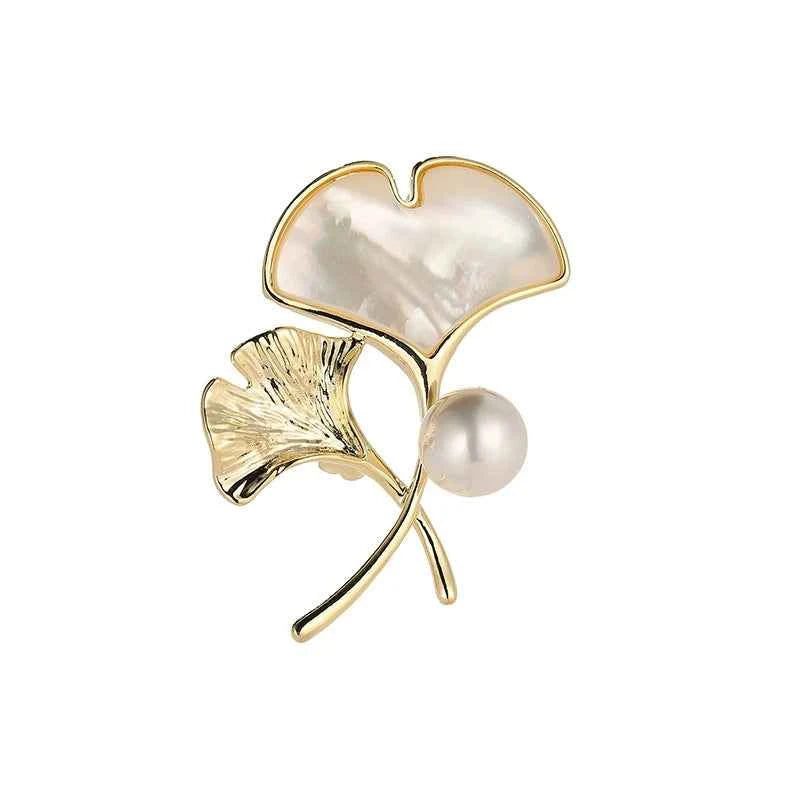 Zlatá a stříbrná brož s perlovým bambusem – elegantní špendlík na kabát