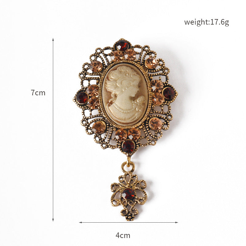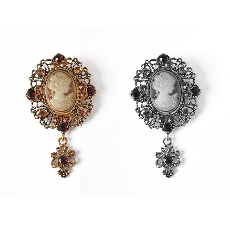 Vintage brož Queen Relief z kovu s kamínky 2 kusy (zlatá a stříbrná)