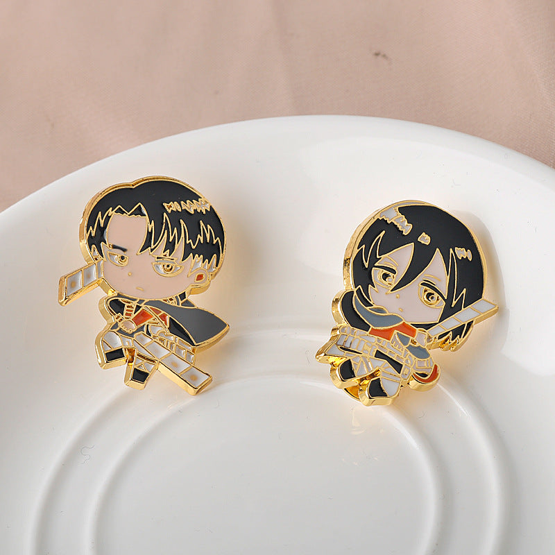 Sada 2 kovových broží Attack on Titan Mikasa Ackerman a Levi