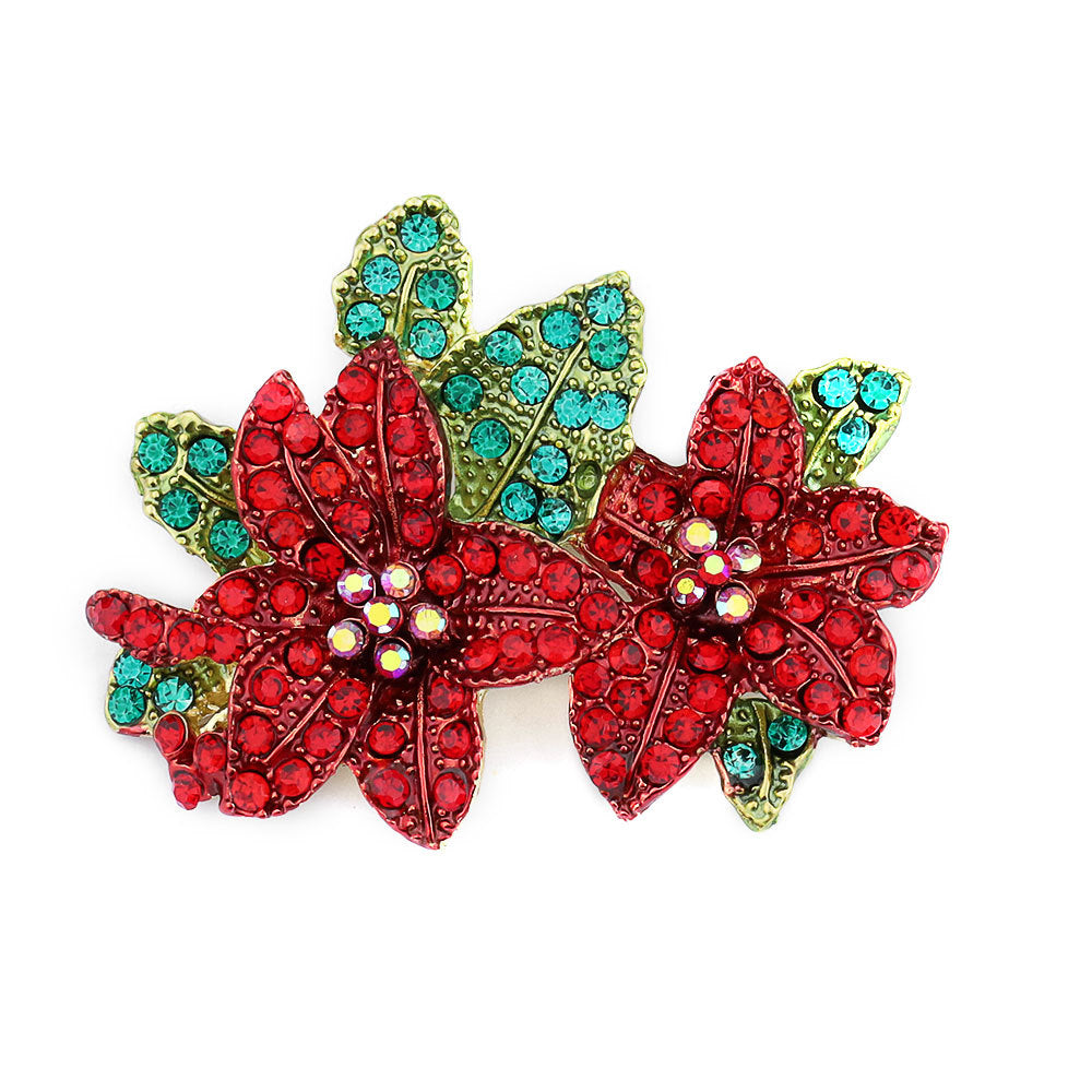 Třpytivá zelená list s červenou květinou diamantová brožová spona 2KS