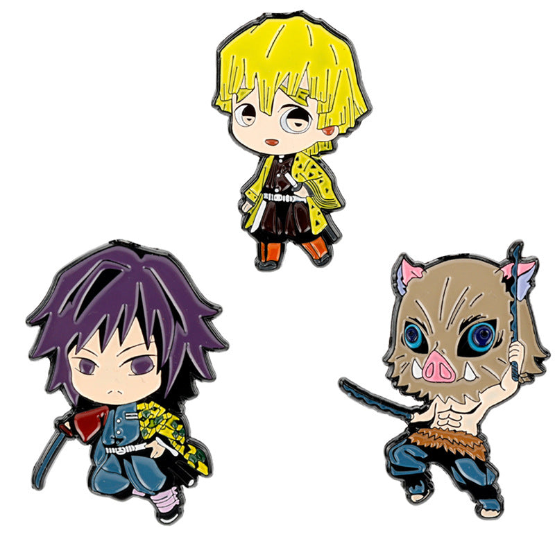 Demon Slayer Yori Zenitsu Inosuke kovové brože 3 kusy