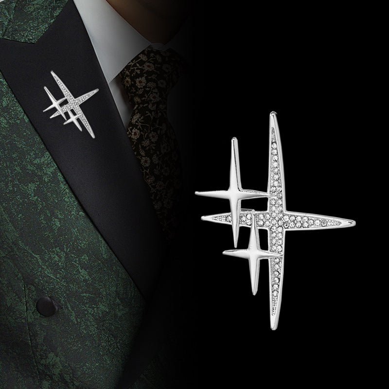 35mm osmicípá hvězda módná kovová brož odznak pro muže 2 ks