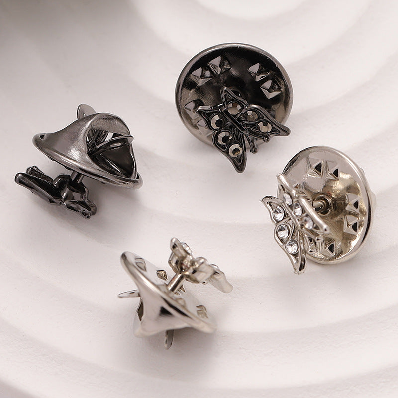 6.5mm černá stříbrná kovová brož motýl pro pánské košile 10 ks