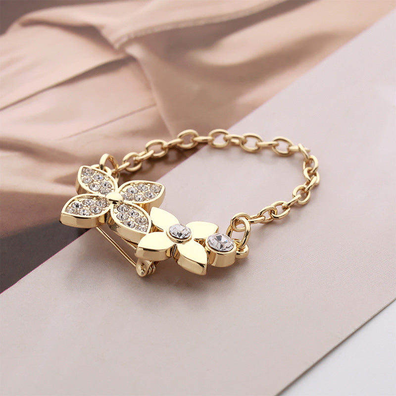 Zlatá řetězová brož z diamantových okvětních lístků z slitiny Dekorativní špendlík 2KS