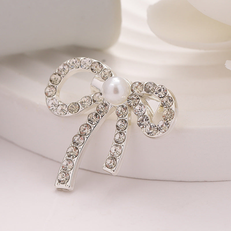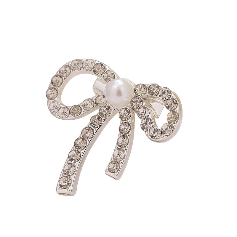 Brož s mašlí, kamínky a perlami, kovová spona na stažení pasu, 6 ks
