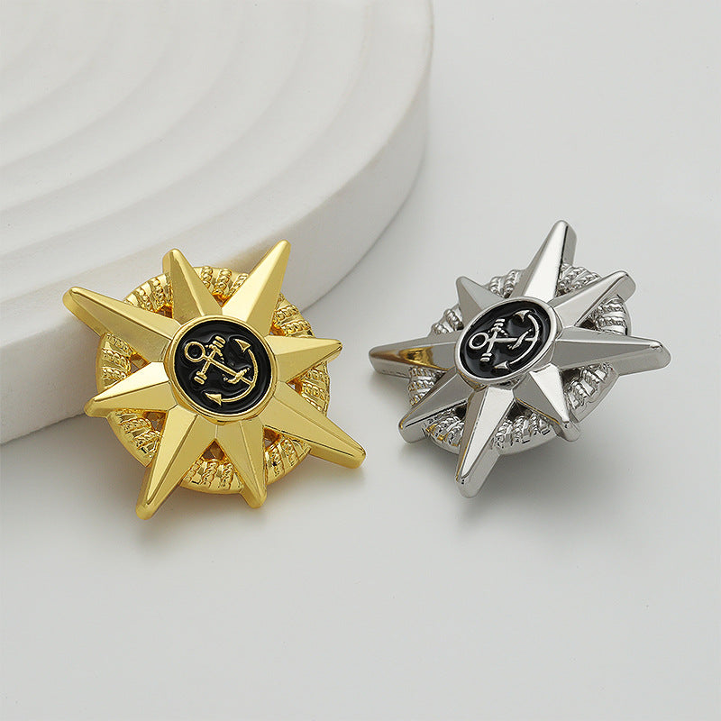 Kotvící epoxidové zlato stříbrné osmihranné hvězdicové kovové brože 2 kusy