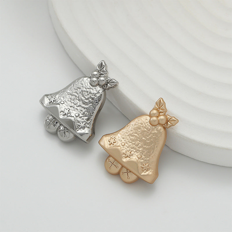Vintage vánoční zvonek matná zlatá a stříbrná slitinová brož 4 ks