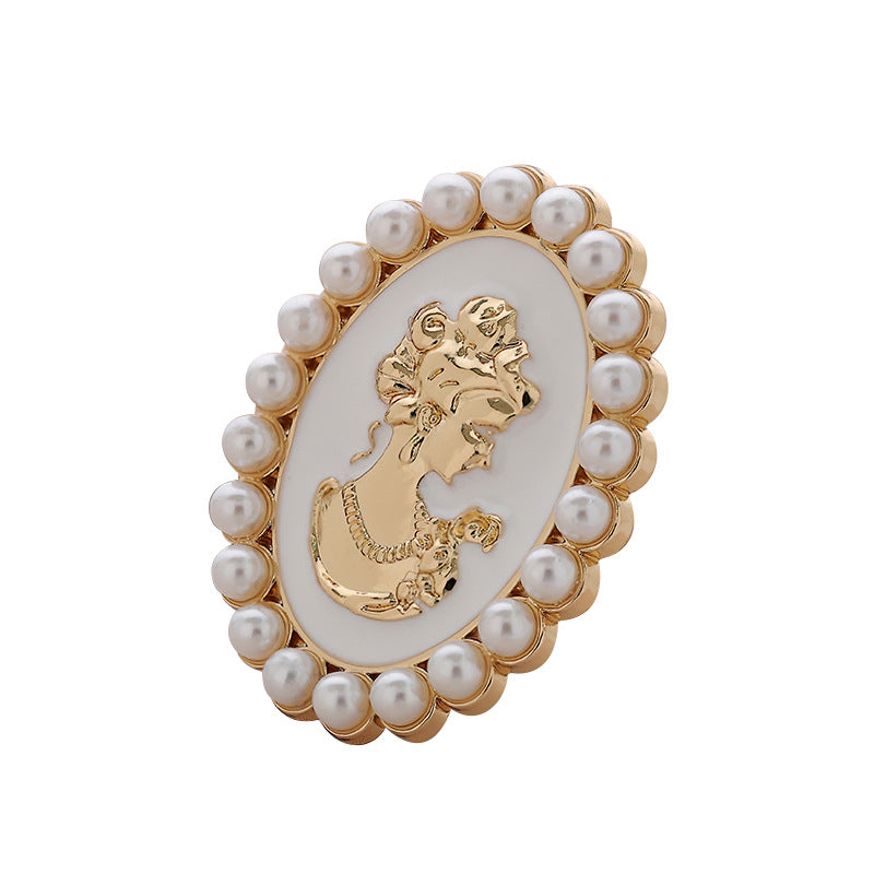 31mm Retro palác perlová kovová brož s portrétem krásy 3ks