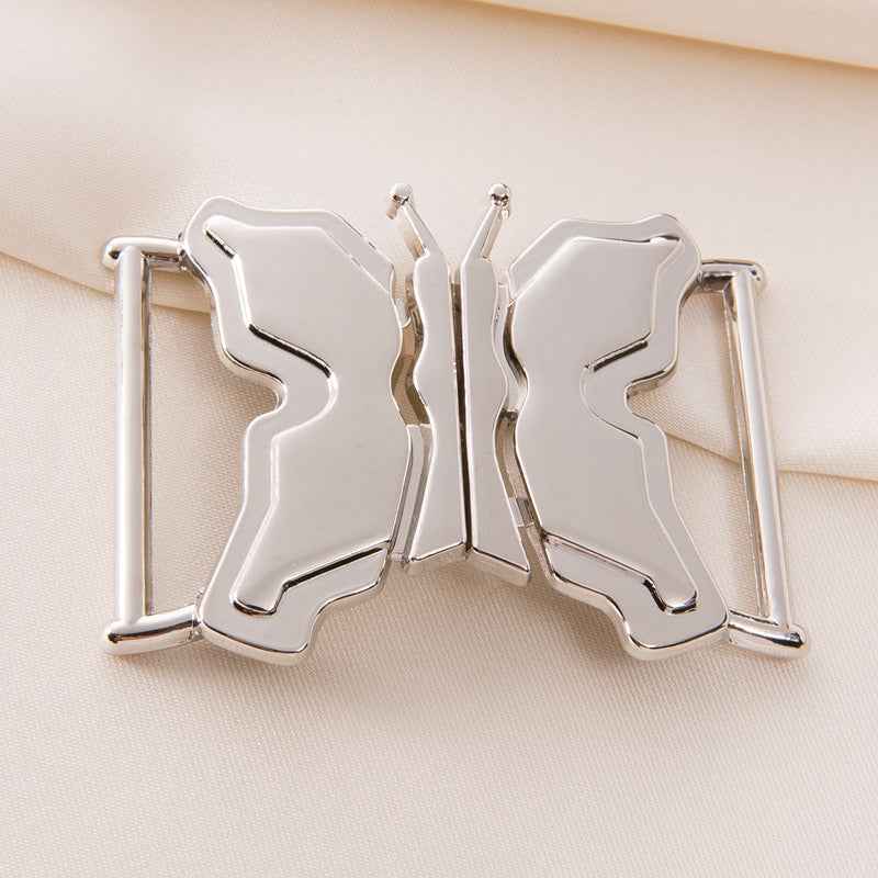 30mm Stříbrná Motýlí Spona na Pas - Dekorativní Sada Přezek na Kabát 10ks