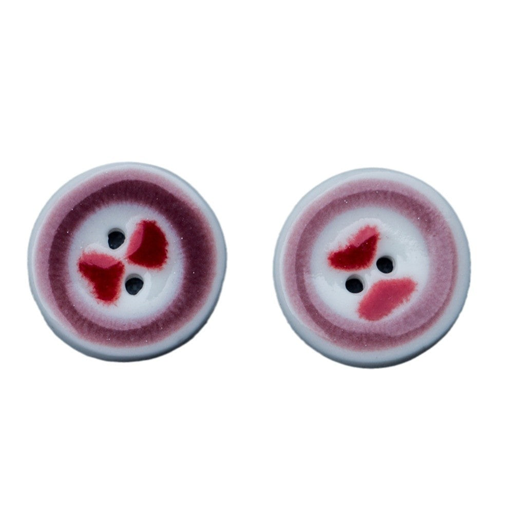 16mm kulaté 2 dírkové ručně malované keramické knoflíky s fialovo-červeným srdíčkovým vzorem 6 ks
