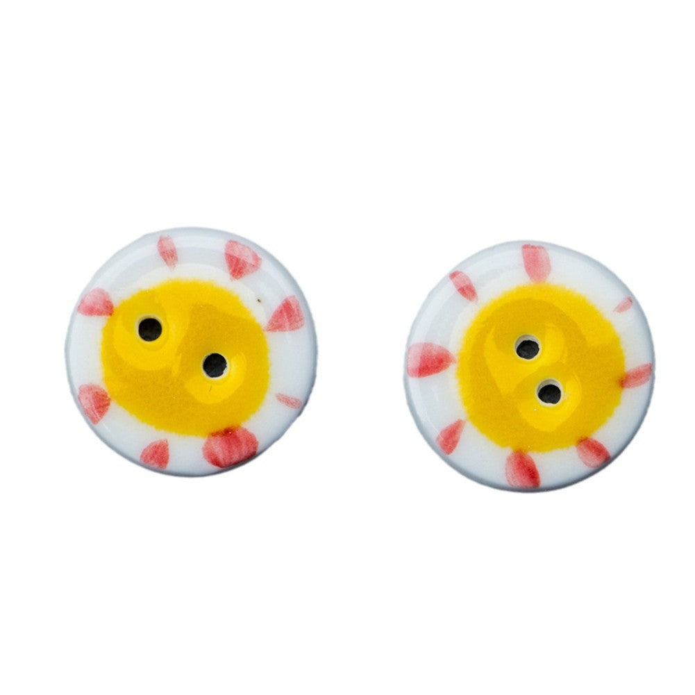 20mm kulaté keramické knoflíky se 2 dírkami a žlutým vzorem slunce 6 ks