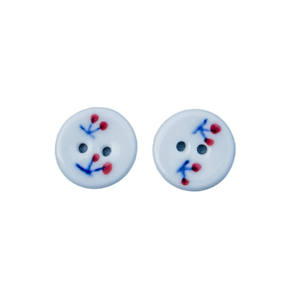 18mm Ručně vyráběné kulaté keramické knoflíky se 2 dírkami a vzorem červených třešní 6KS