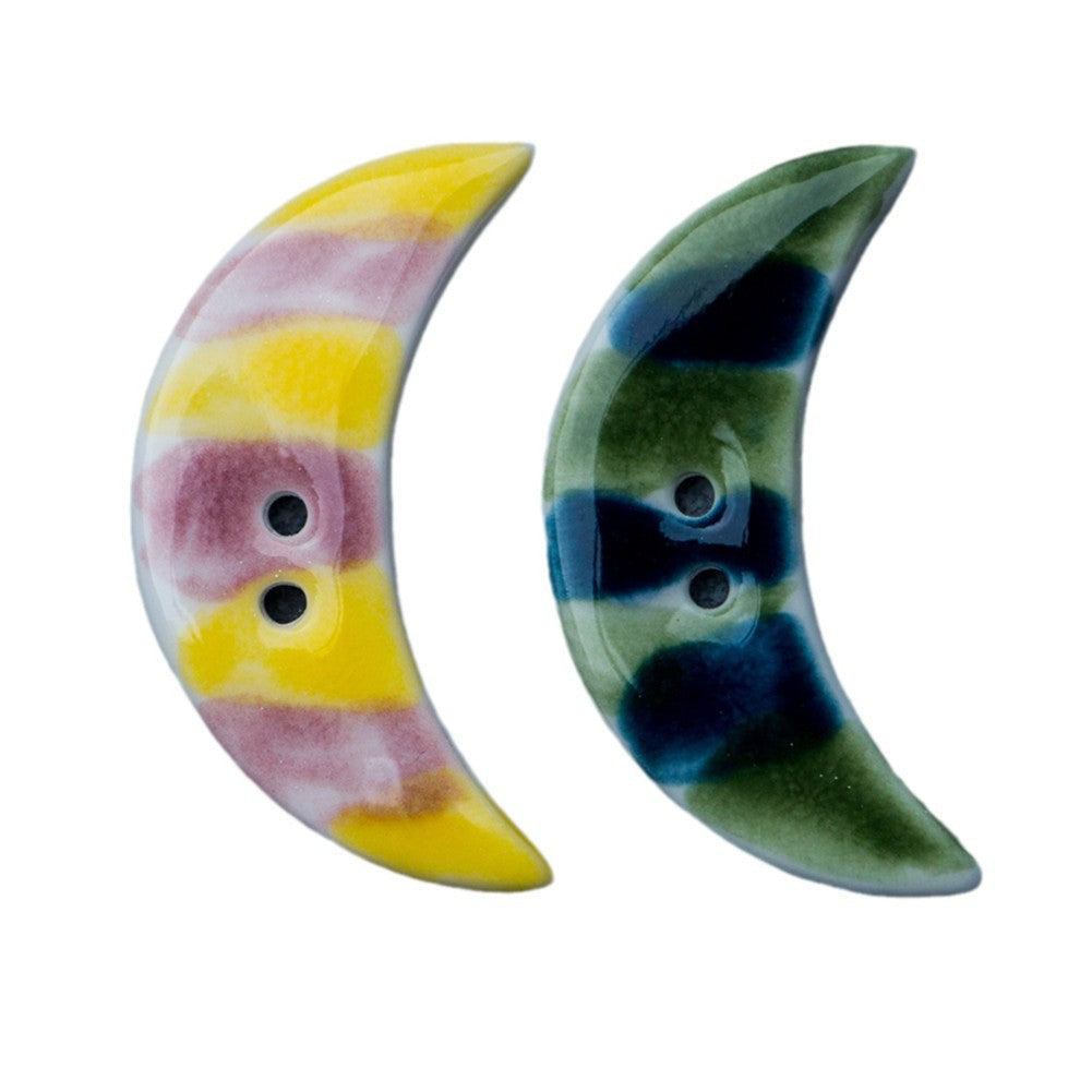 34mm zelenožluté keramické knoflíky ve tvaru půlměsíce se 2 dírkami pro výrobu náramků a náhrdelníků, 4 kusy