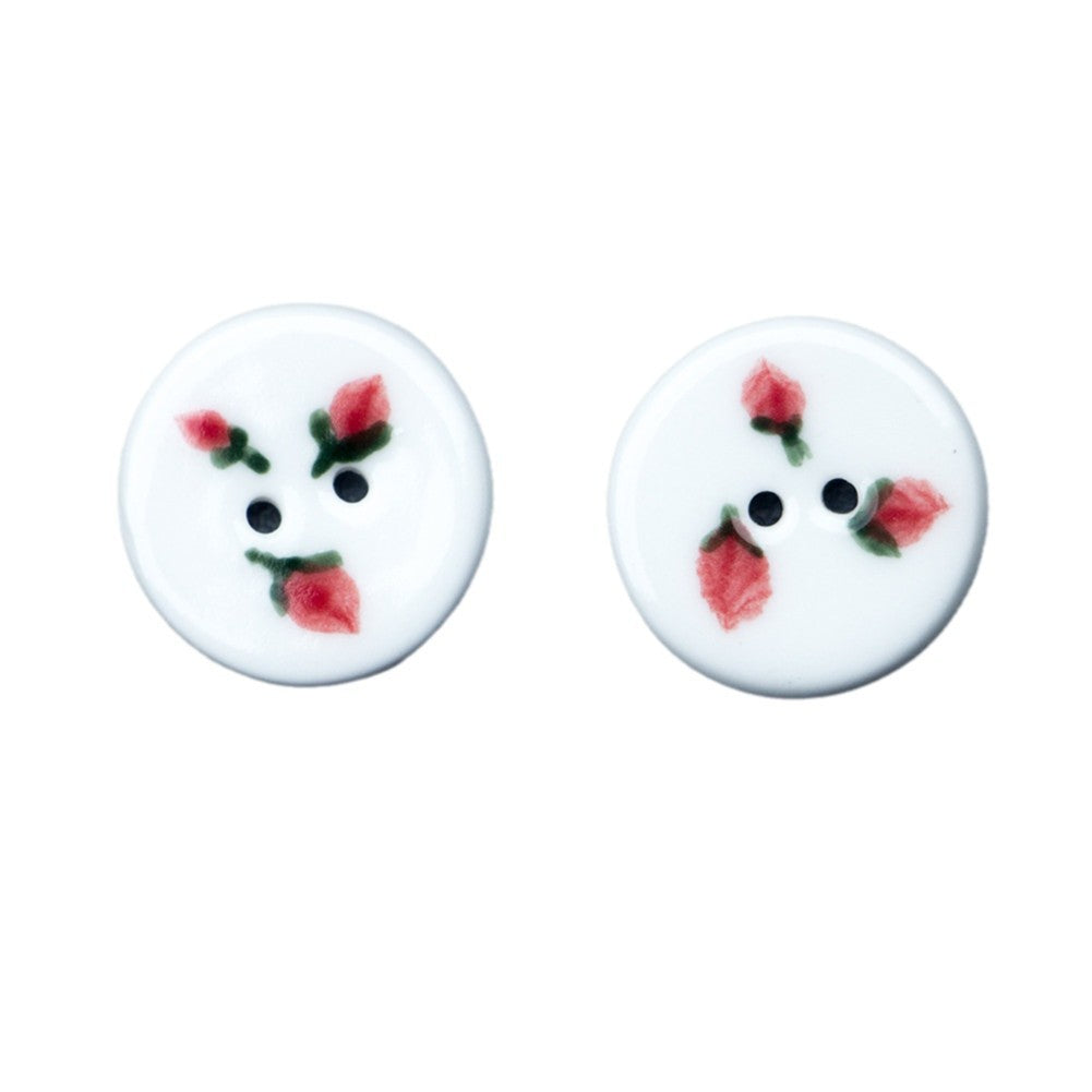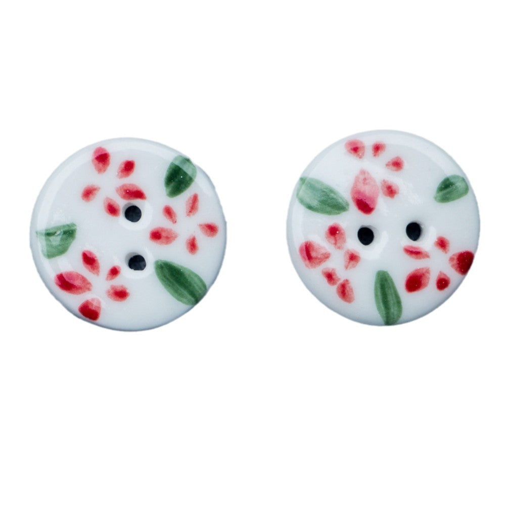 19.5mm kulaté 2 dírkové ručně vyráběné keramické knoflíky s červenými květy 6KS