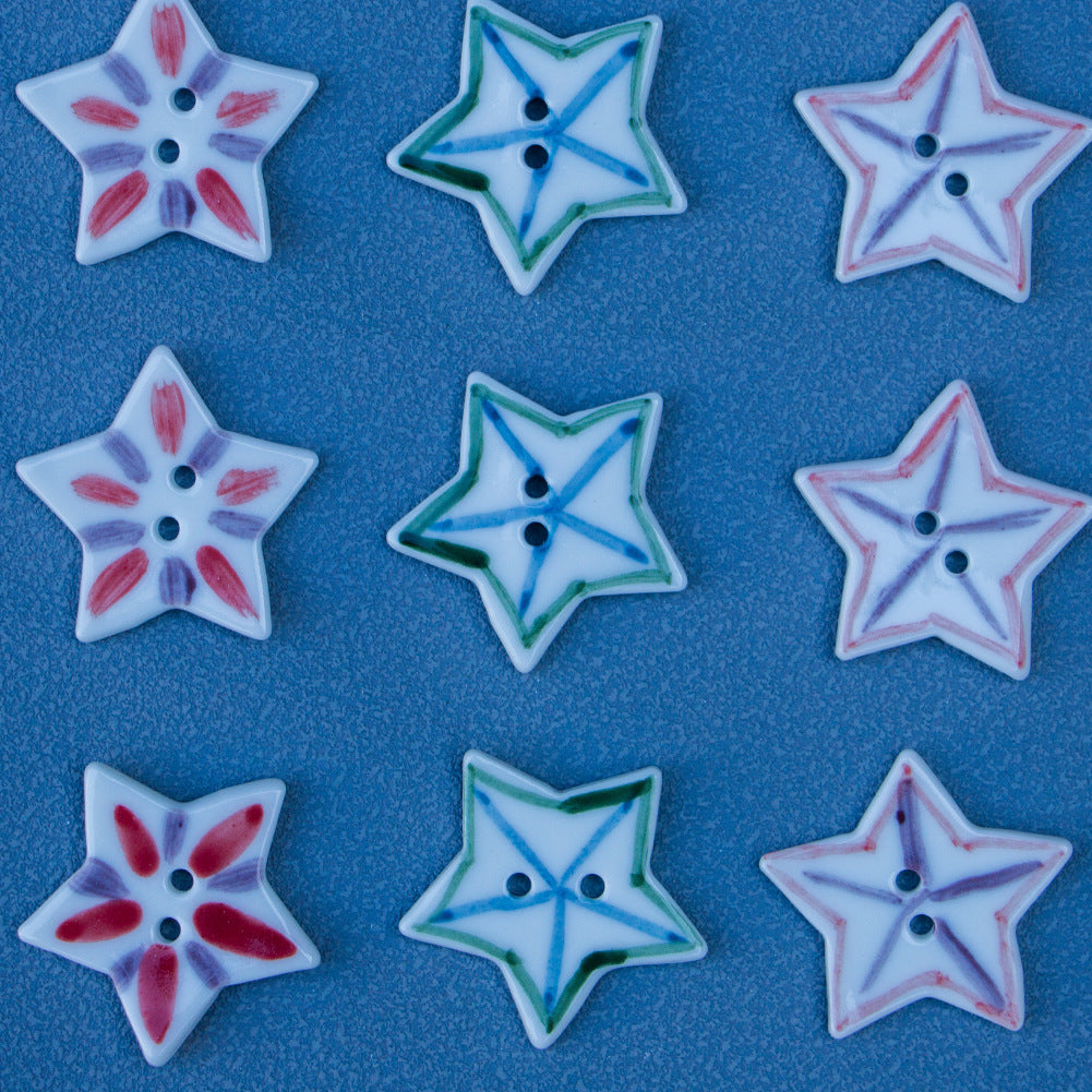 30mm ručně malované červenofialové knoflíky z keramiky ve tvaru hvězdy s motivem zápalek 6 ks
