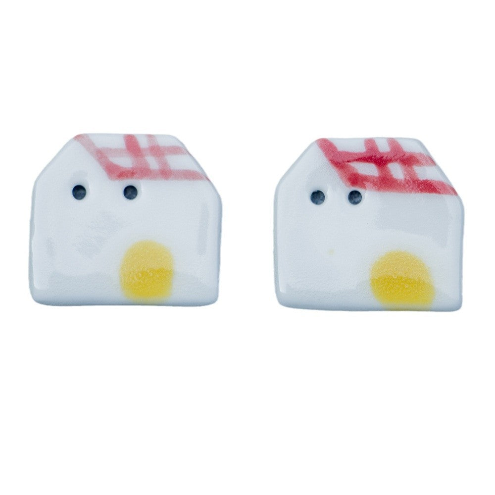 23mm Červená/Modrá Dlaždicová střecha Malý dům Ručně vyrobený keramický knoflík 2ks