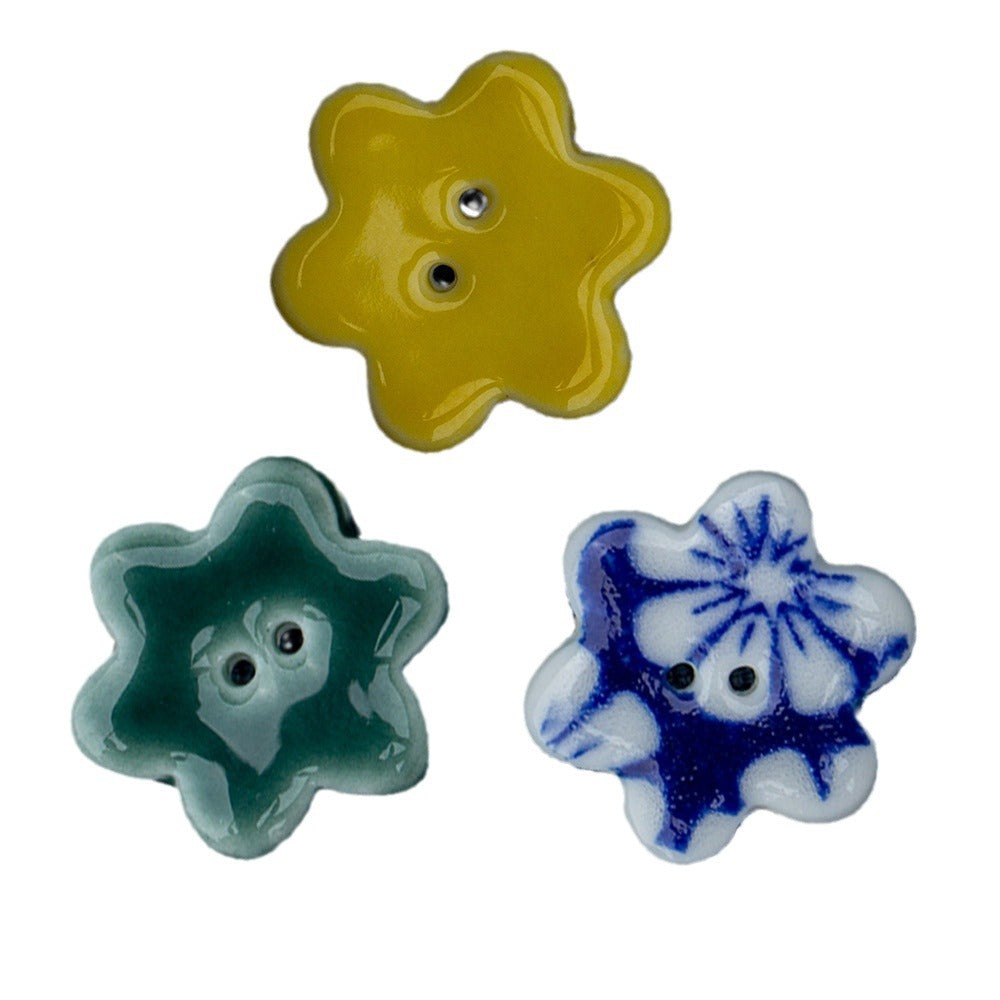 18mm žluté zelené modré malé květinové keramické knoflíky pro DIY brožové doplňky 10ks