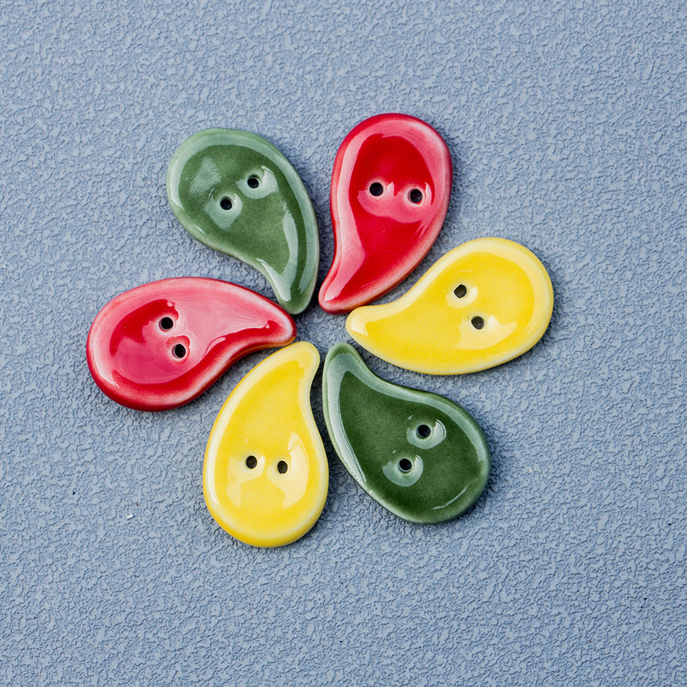 Červené Žluté Zelené Knoflíky ve tvaru uvozovek Ručně vyráběné DIY keramické 10 ks