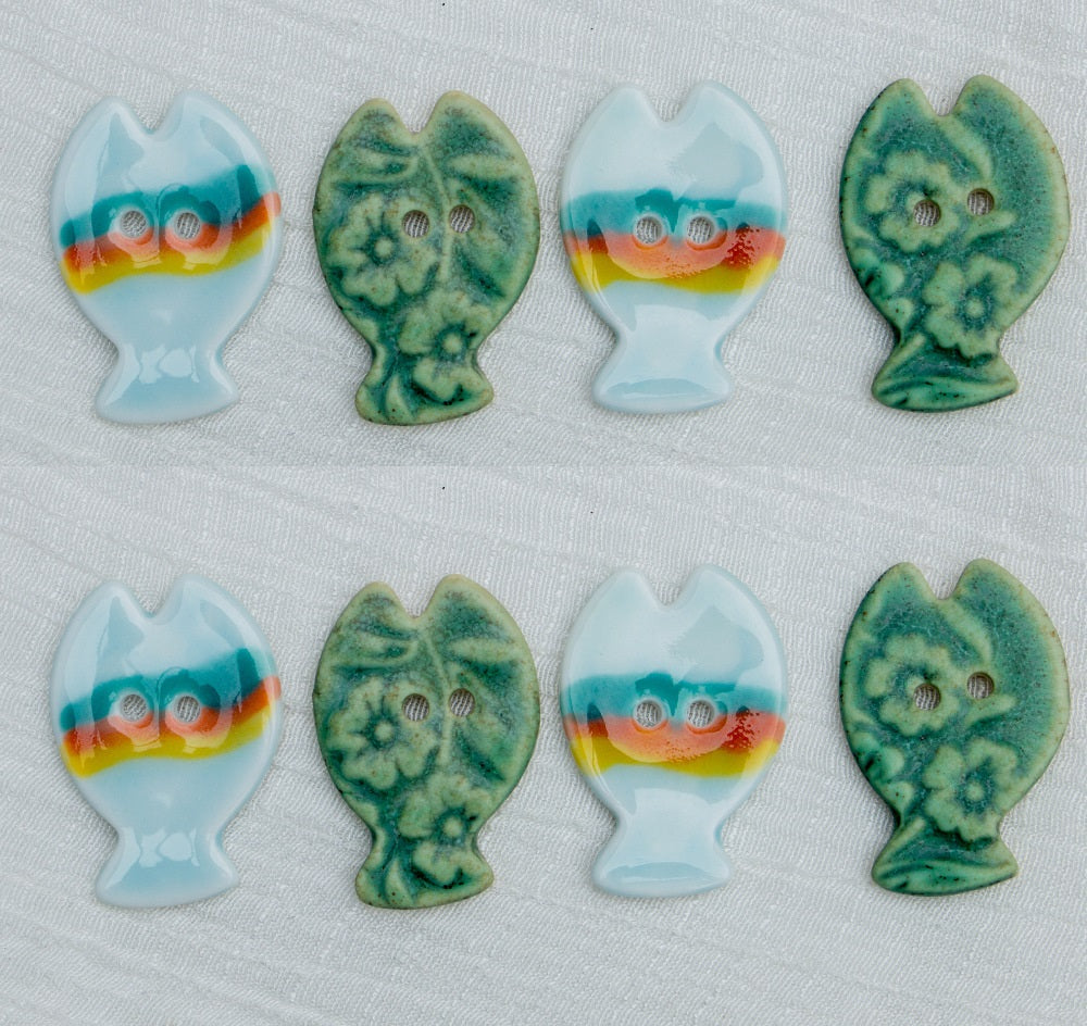 30mm duhové a bronzově zelené ručně malované keramické knoflíky na ryby se 2 dírkami 6 ks