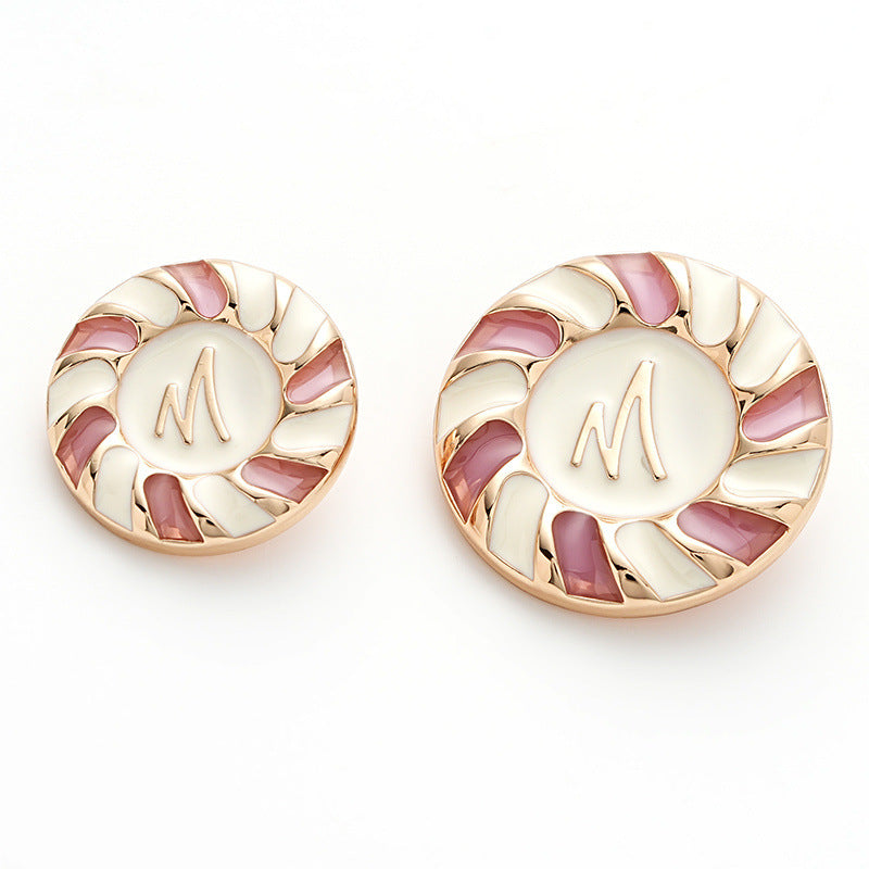 M-písmeno smaltované dekorované růžově zlaté kovové knoflíky s držadlem 6 ks