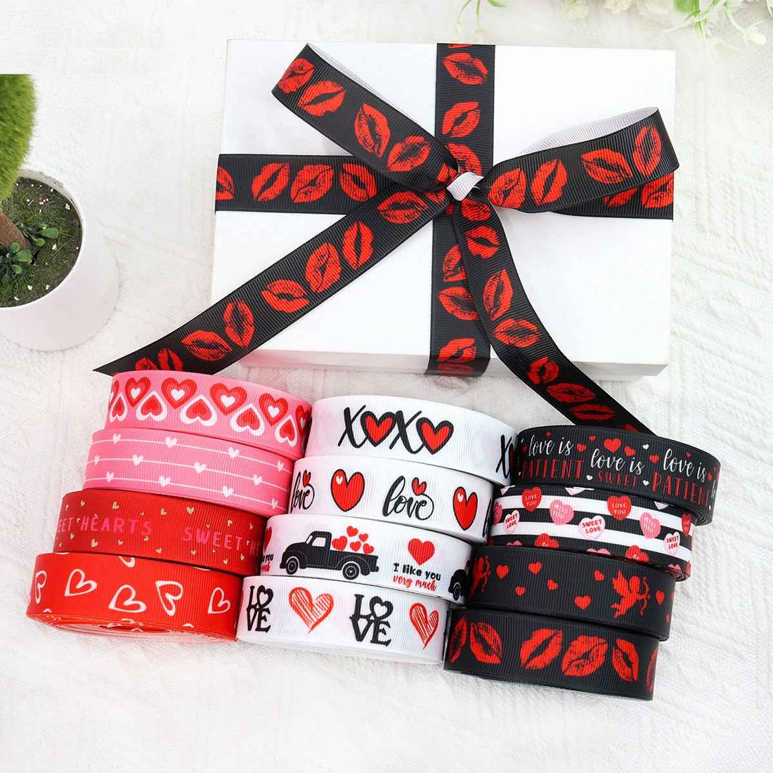 16mm Stuha na horké ražbě srdce na Valentýna, balení 9 barev