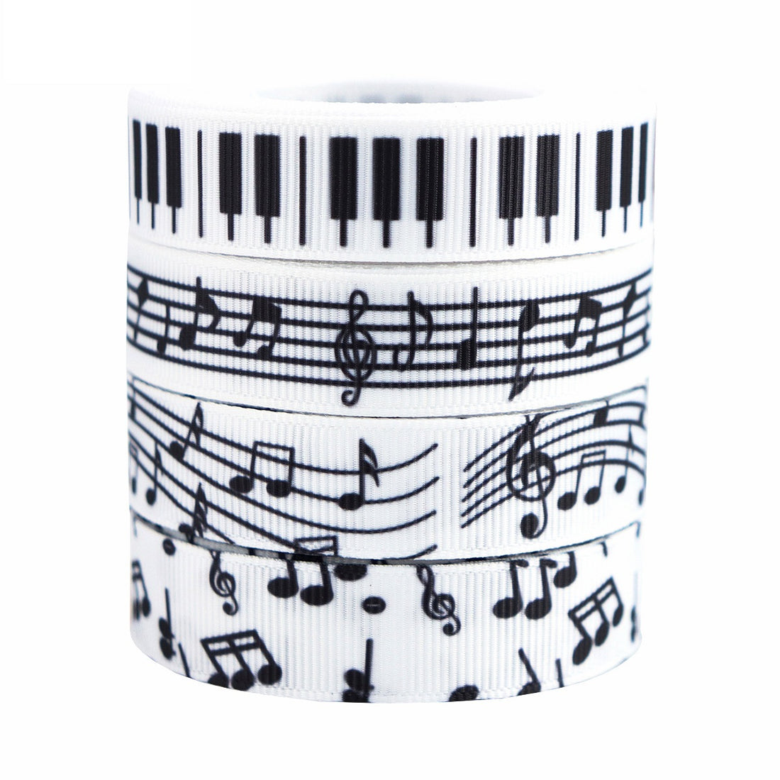 16mm černobílá stuha s hudebními notami - 4 role, 10 yardů na roli