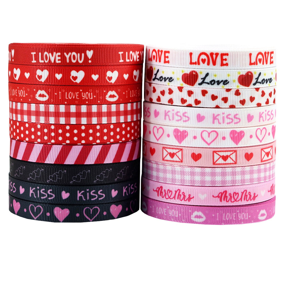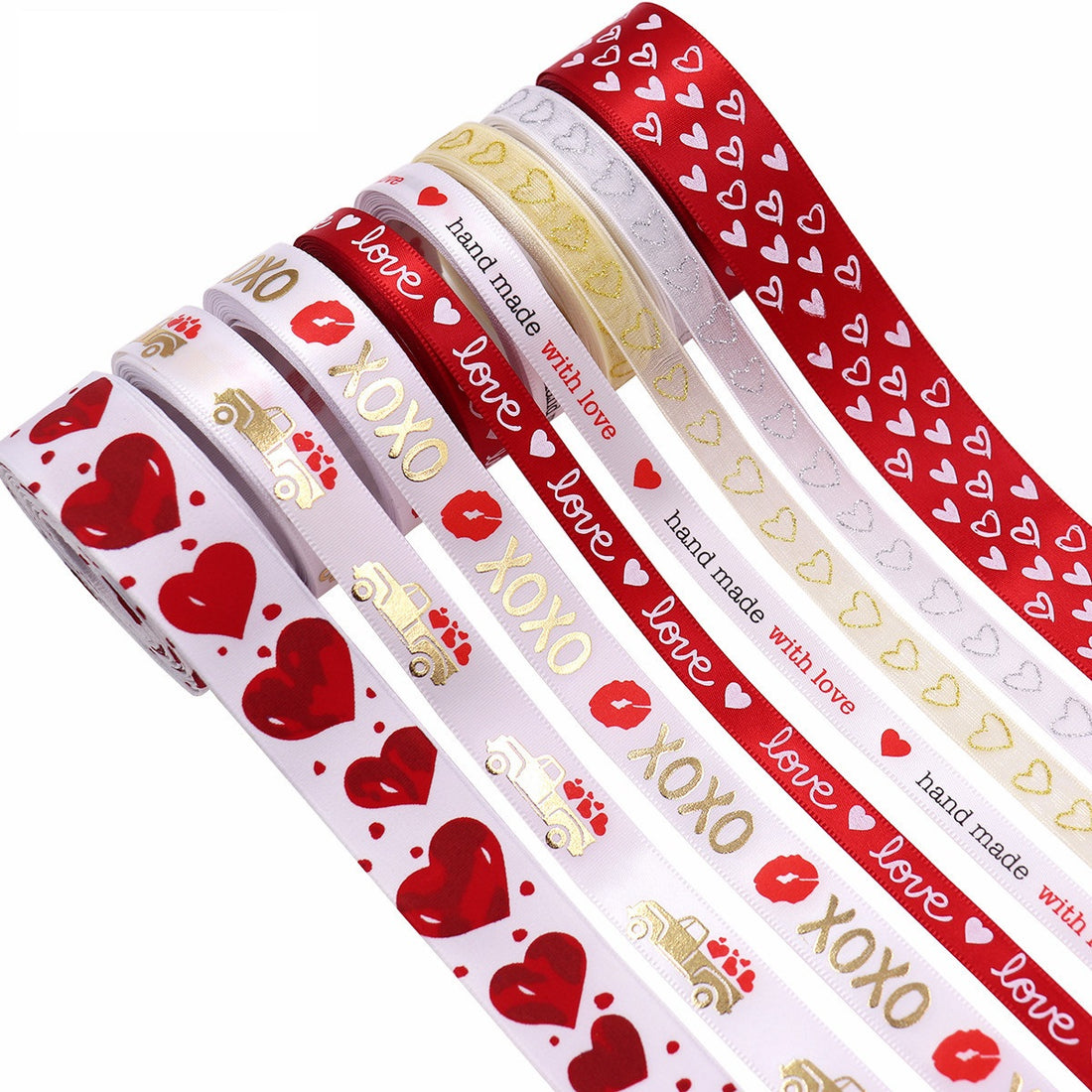 10mm/16mm/25mm XOXO červená rty srdce horká ražba stuha 8 balení