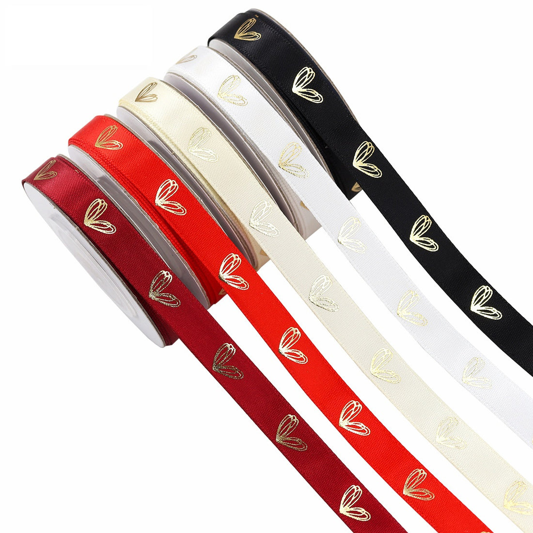 10mm Stuha se zlatou fólií ve tvaru srdce, sada 5 barev