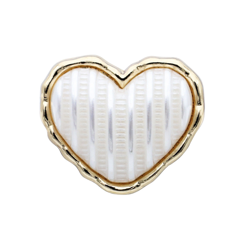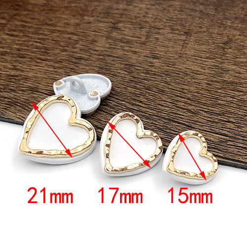 15/17/21mm Bílé knoflíky ve tvaru srdce s kovovým dříkem a zlatým lemováním 20 ks
