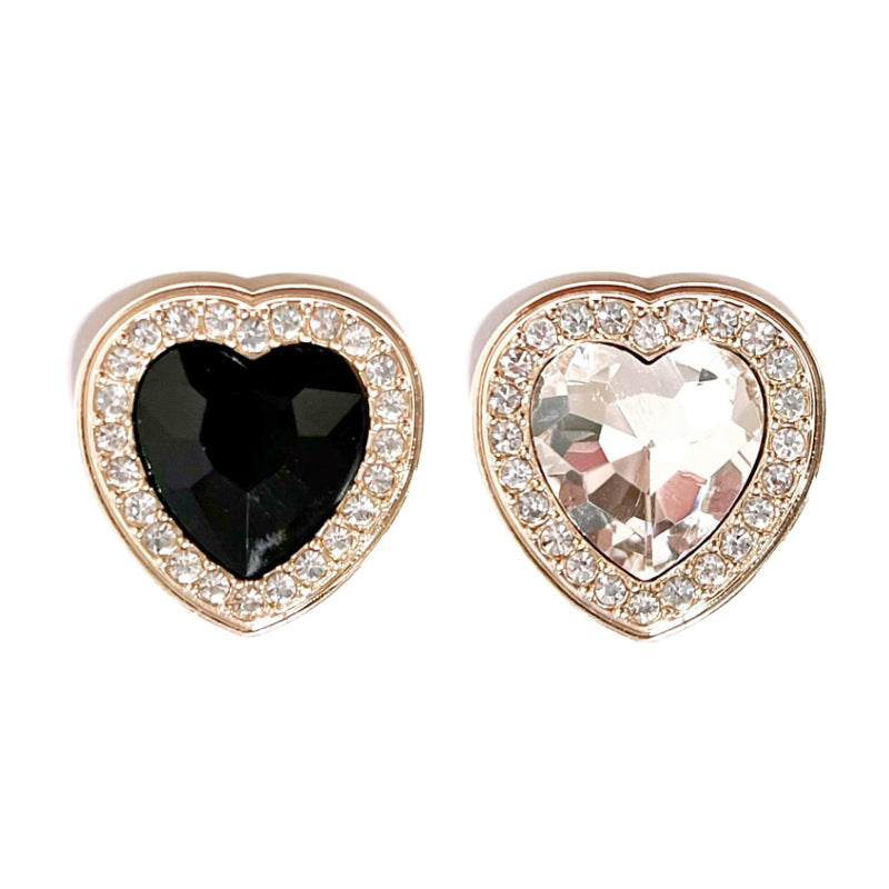 Černobílé knoflíky srdce z kovu a kamínků pro svetry 10 ks