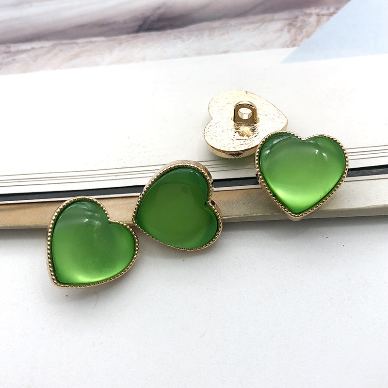 18mm zelené knoflíky ve tvaru srdce s kovovým dříkem 12 ks