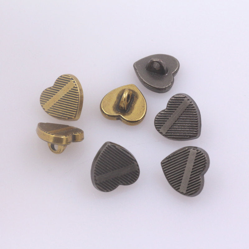Zlaté Stříbrné Základní Vertikální Pruhované Tvar Srdce Kovové Knoflíky se Stopkou 10ks