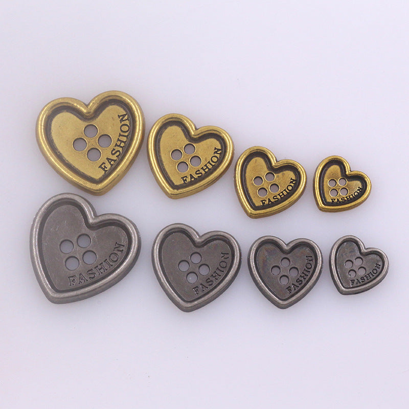 Kovové knoflíky ve tvaru srdce se čtyřmi dírkami pro oblečení a pleteniny, balení 96 kusů