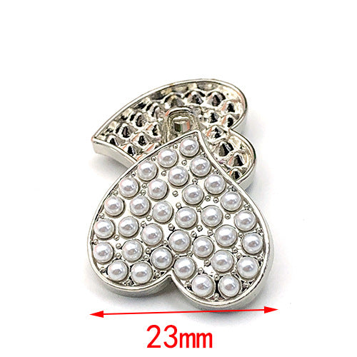 23mm Stříbrné knoflíky ve tvaru srdce s kovovým dříkem a malou perlou 20 ks