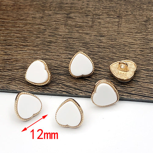 12mm bílé a zlaté knoflíky ve tvaru srdce s kovovým nožičkou 20 ks