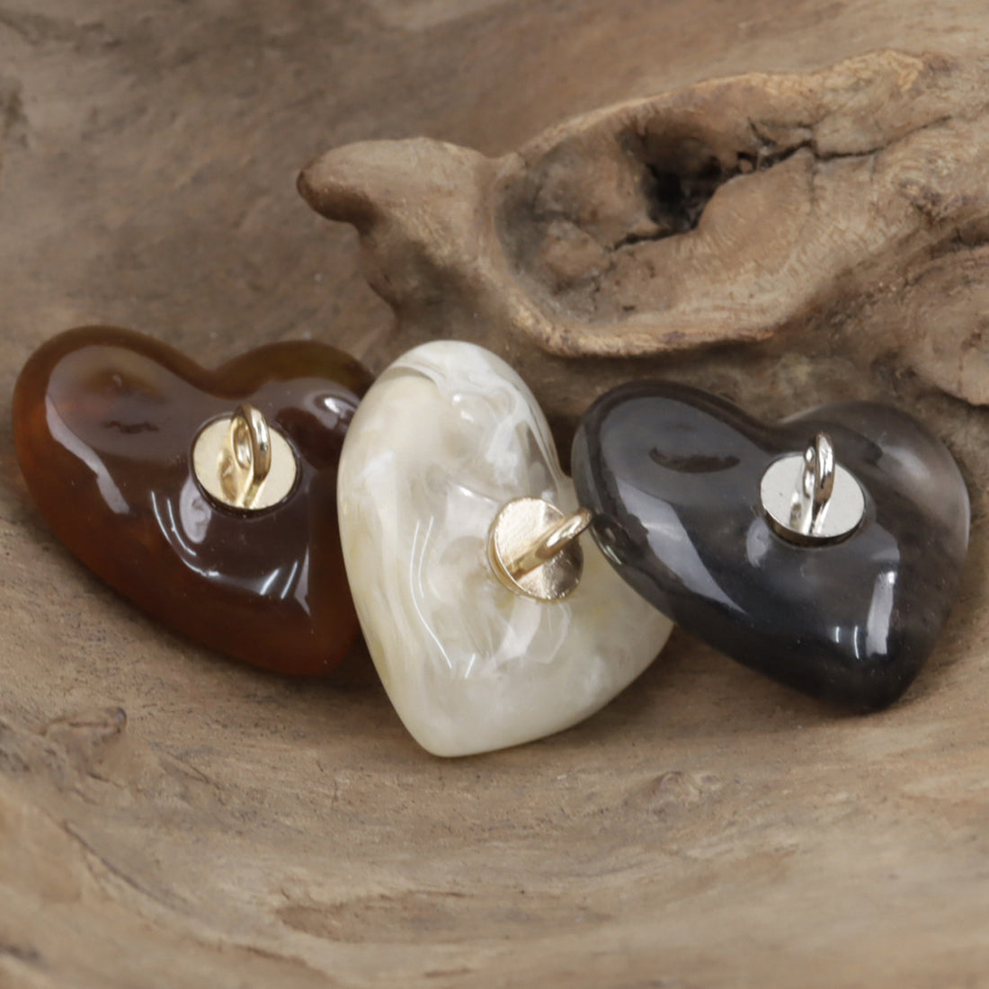 Knoflíky ve tvaru srdce z jantarově zbarvené pryskyřice s kovovým očkem 10KS