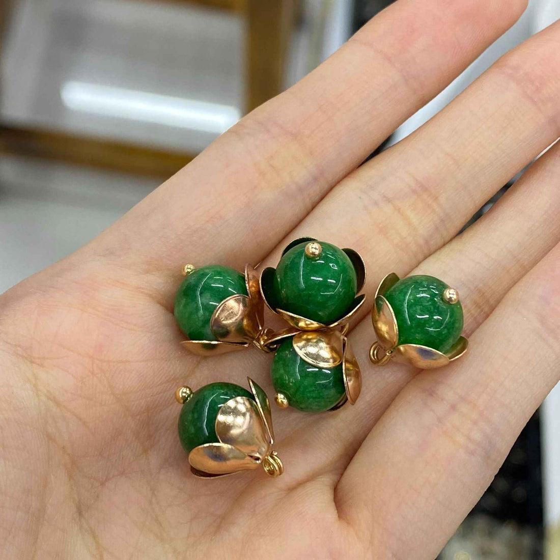 12mm čínské qipao zelené nefritové kamenné kovové květinové základní knoflíky 20 ks