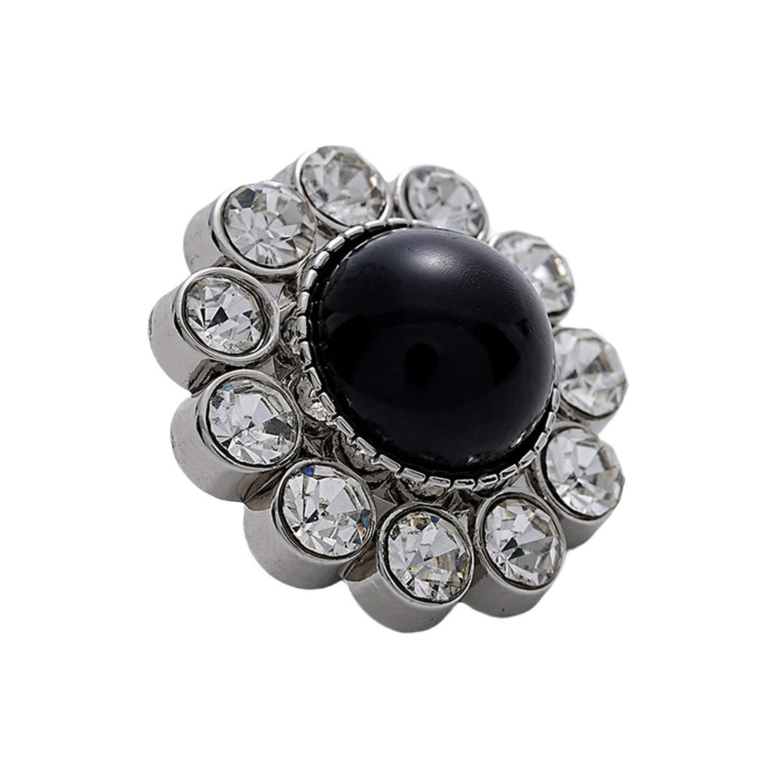 Černé kočičí oko perlový a diamantem zdobený kovový večerní šaty knoflík 5 ks