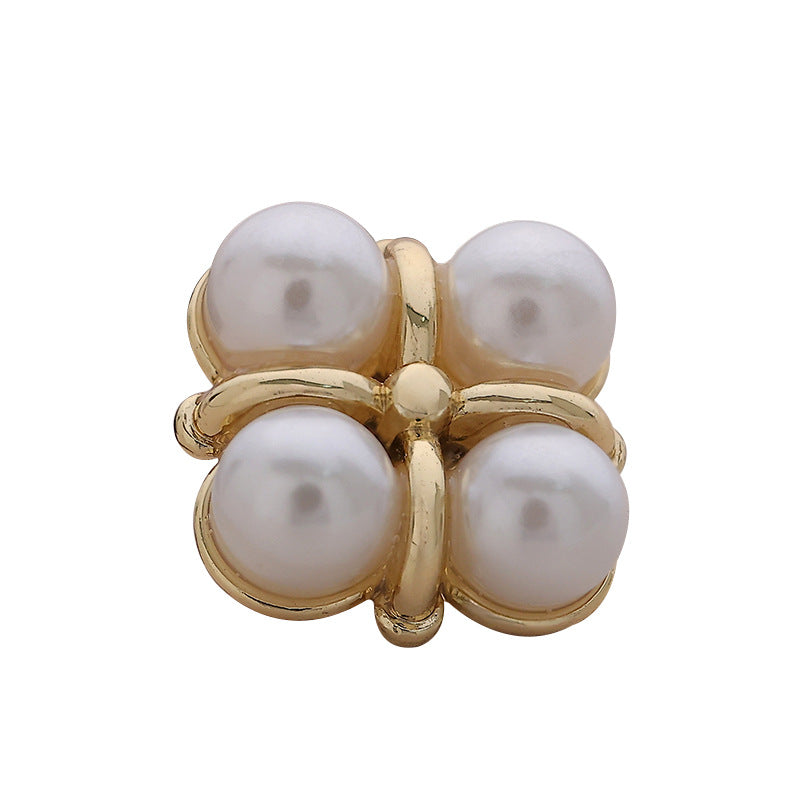 17mm Čtyřlístek Perla Zlatý Kovový Tlačítkový Noháček 10ks