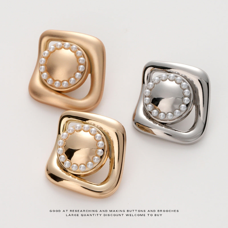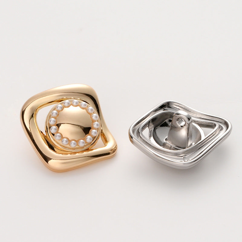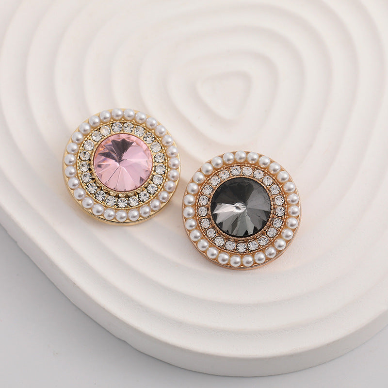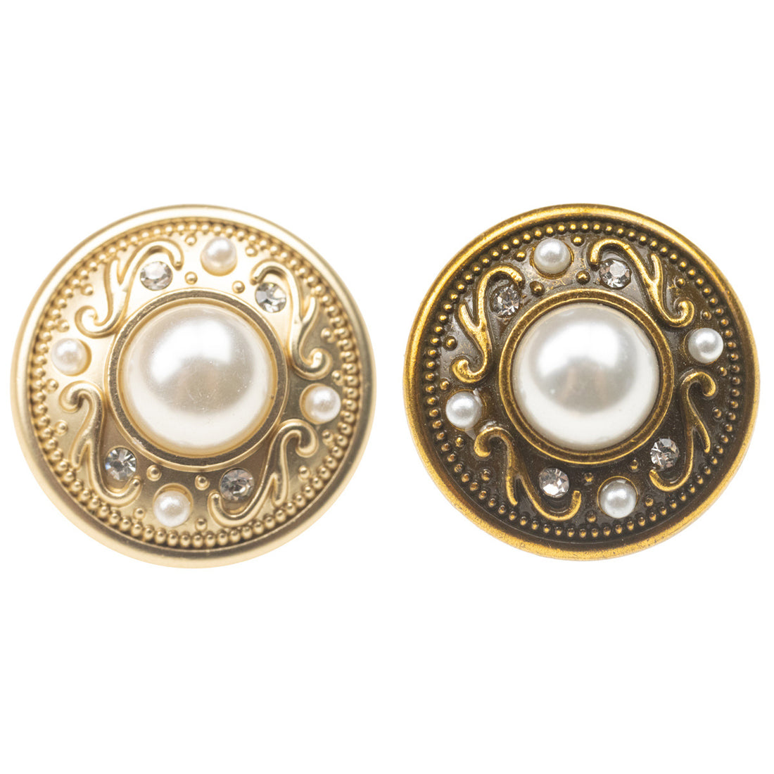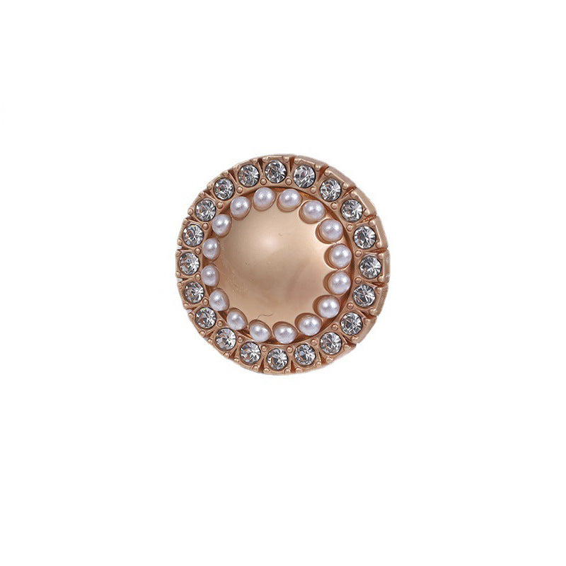 Kulatý módní kovový knoflík s diamanty a perlami 5 ks