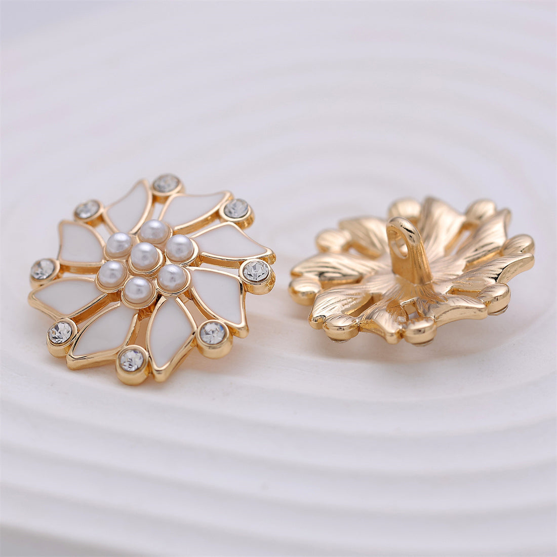 Květinové perlové a krystalové zlaté chromované kovové knoflíky 5 ks
