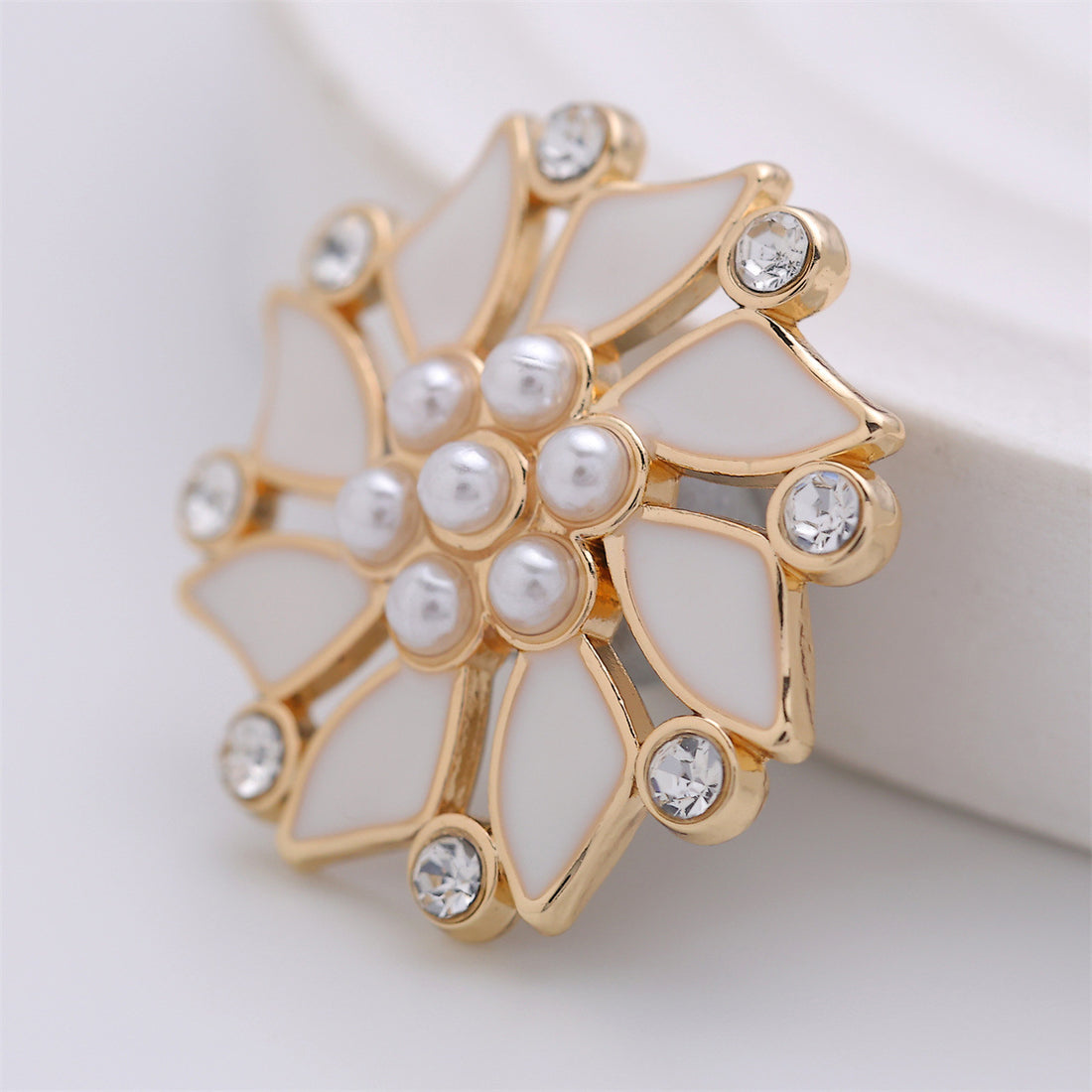 23mm Slunečnicový tvar Plný diamant Perlový stříbrný kovový knoflík 5 ks