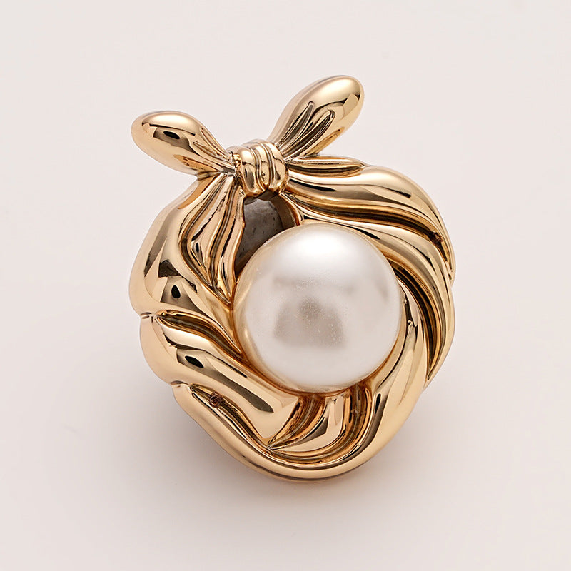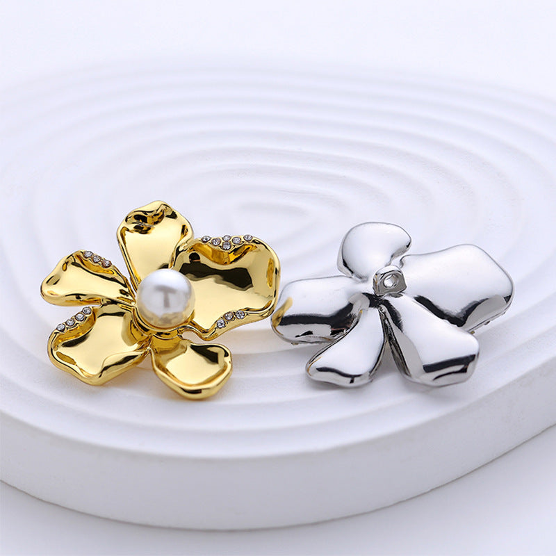 Francouzská zlatá brož s perlovým květem, chromovaná, sada 2 kusů