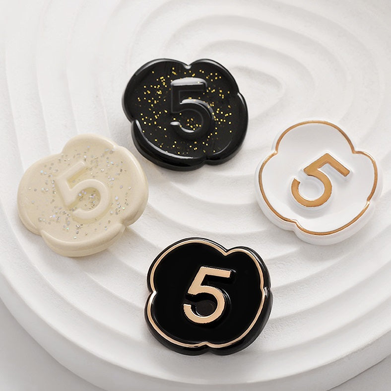 Number 5 lak perleťový květinový kovový ručně šitý knoflík 10 ks