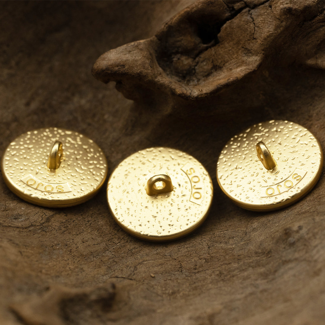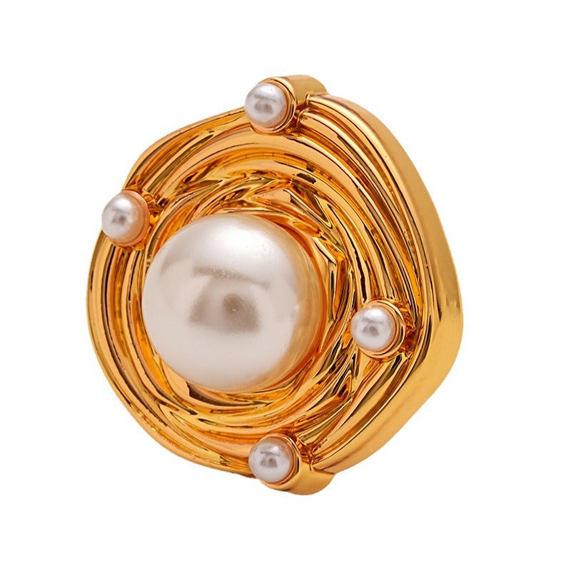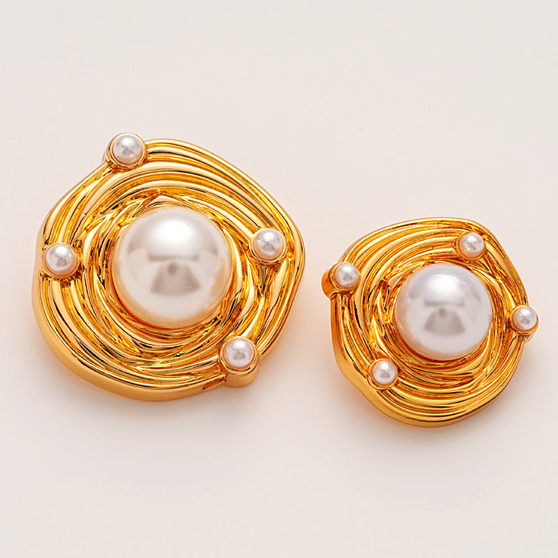Nepravidelné zlaté kovové knoflíky osazené velkými a malými perlami 6 ks