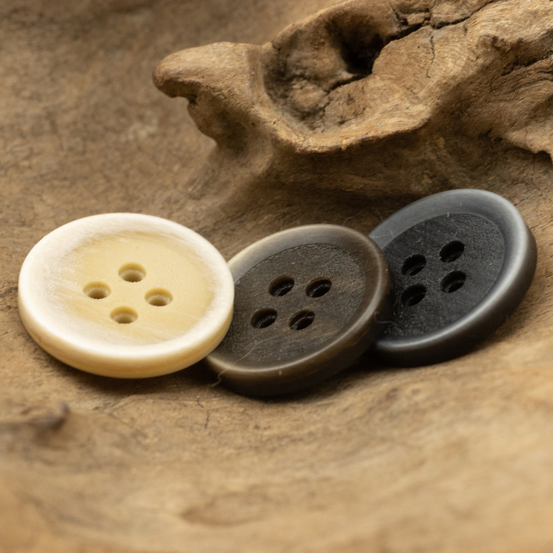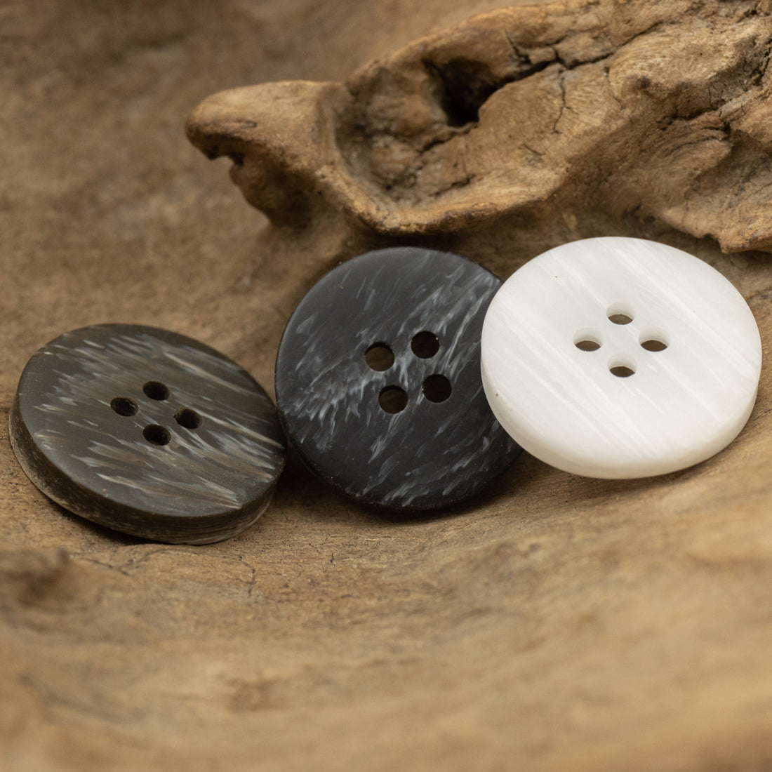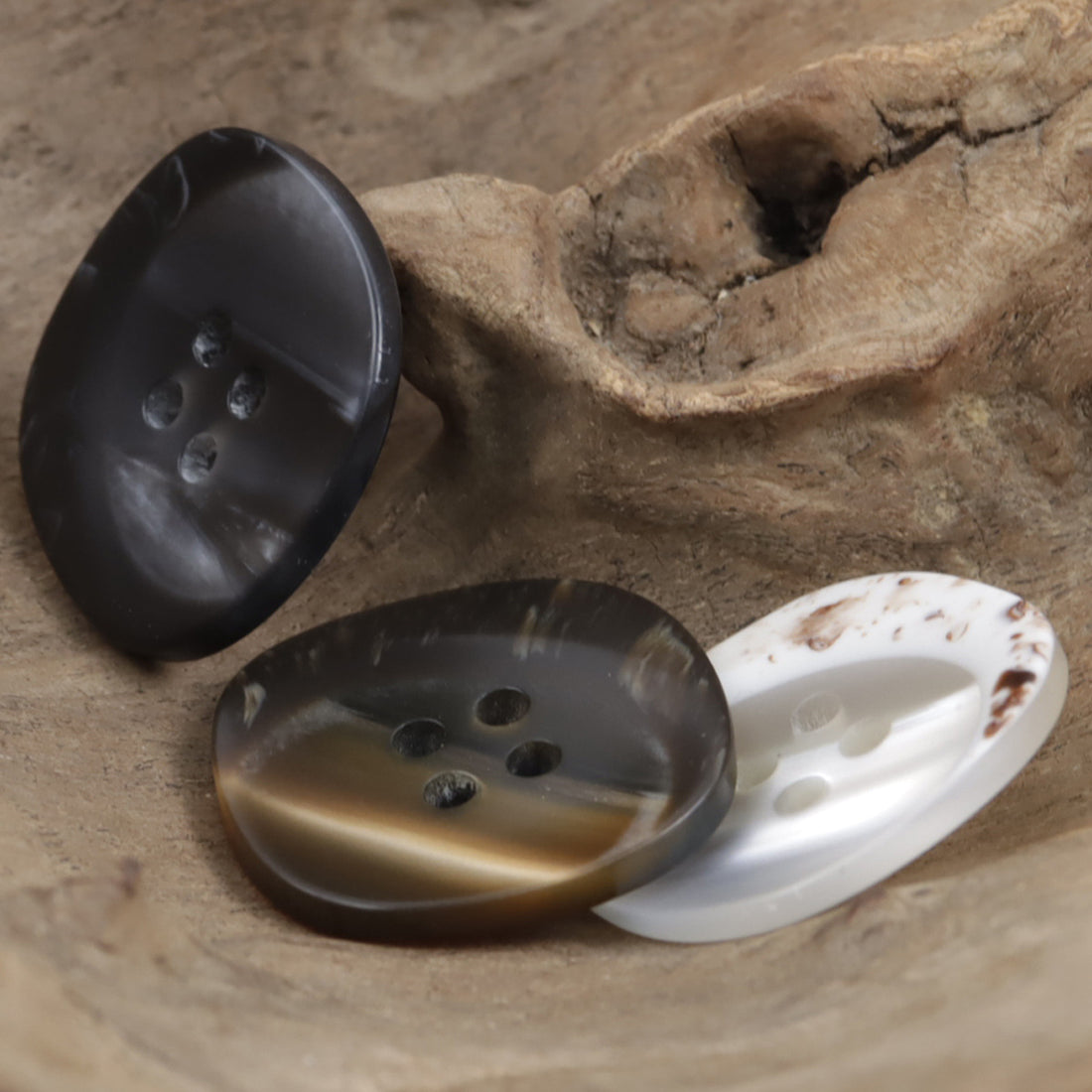 Bílé pryskyřičné knoflíky napodobující zrno buvolí kosti pro saka, 20 kusů