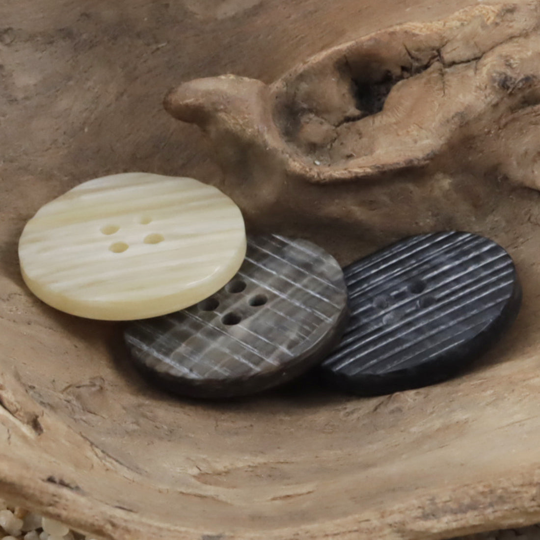 Kulaté 4 dírkové knoflíky z pryskyřice napodobující roh 20 ks