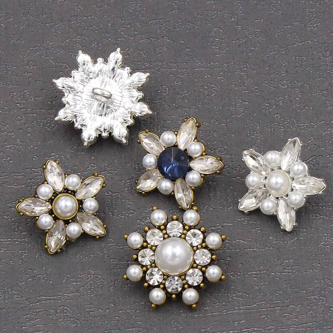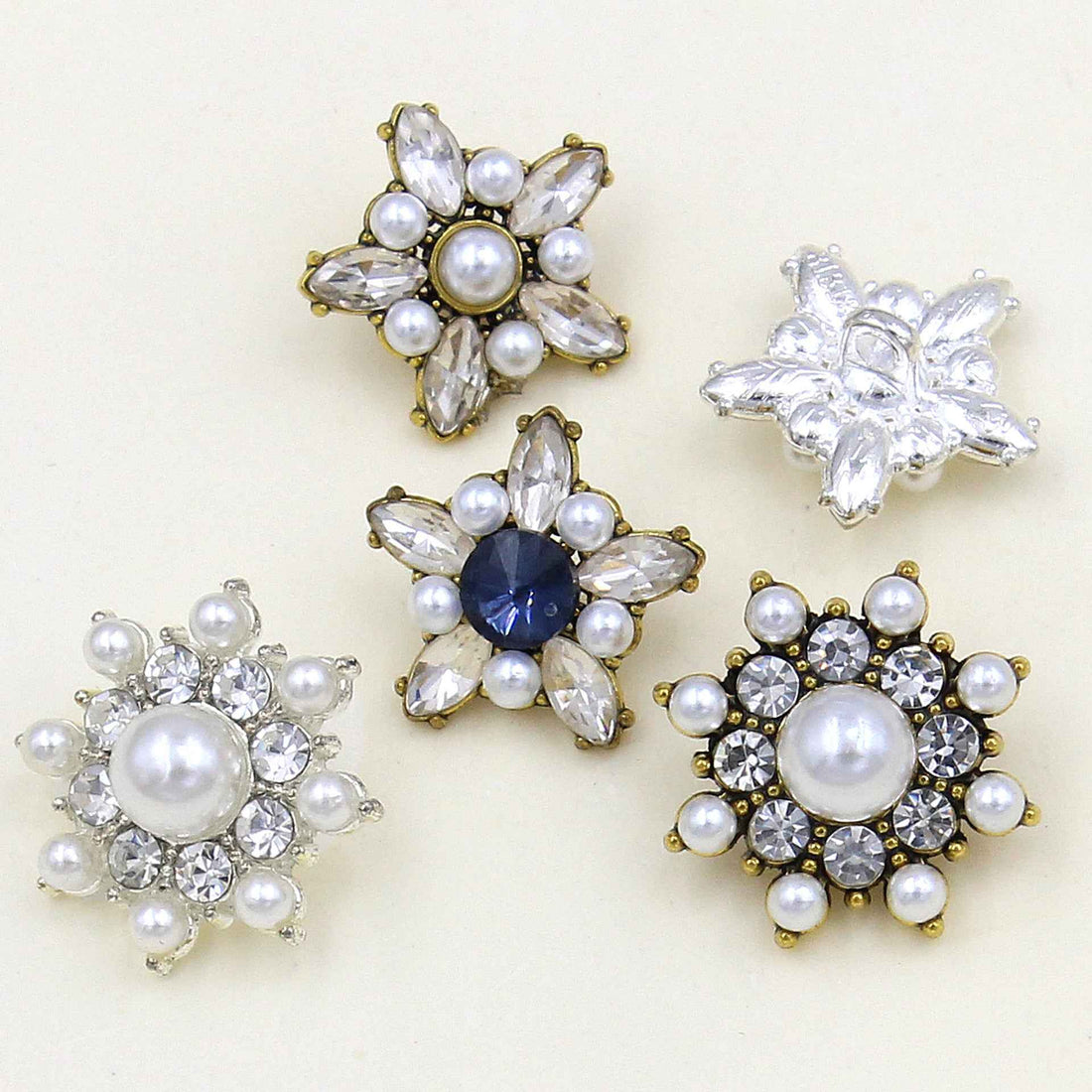 17.5mm/20.5mm hvězdicové lesklé perlové krystalové knoflíky kovový základ 20 ks