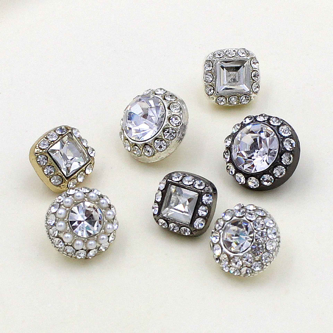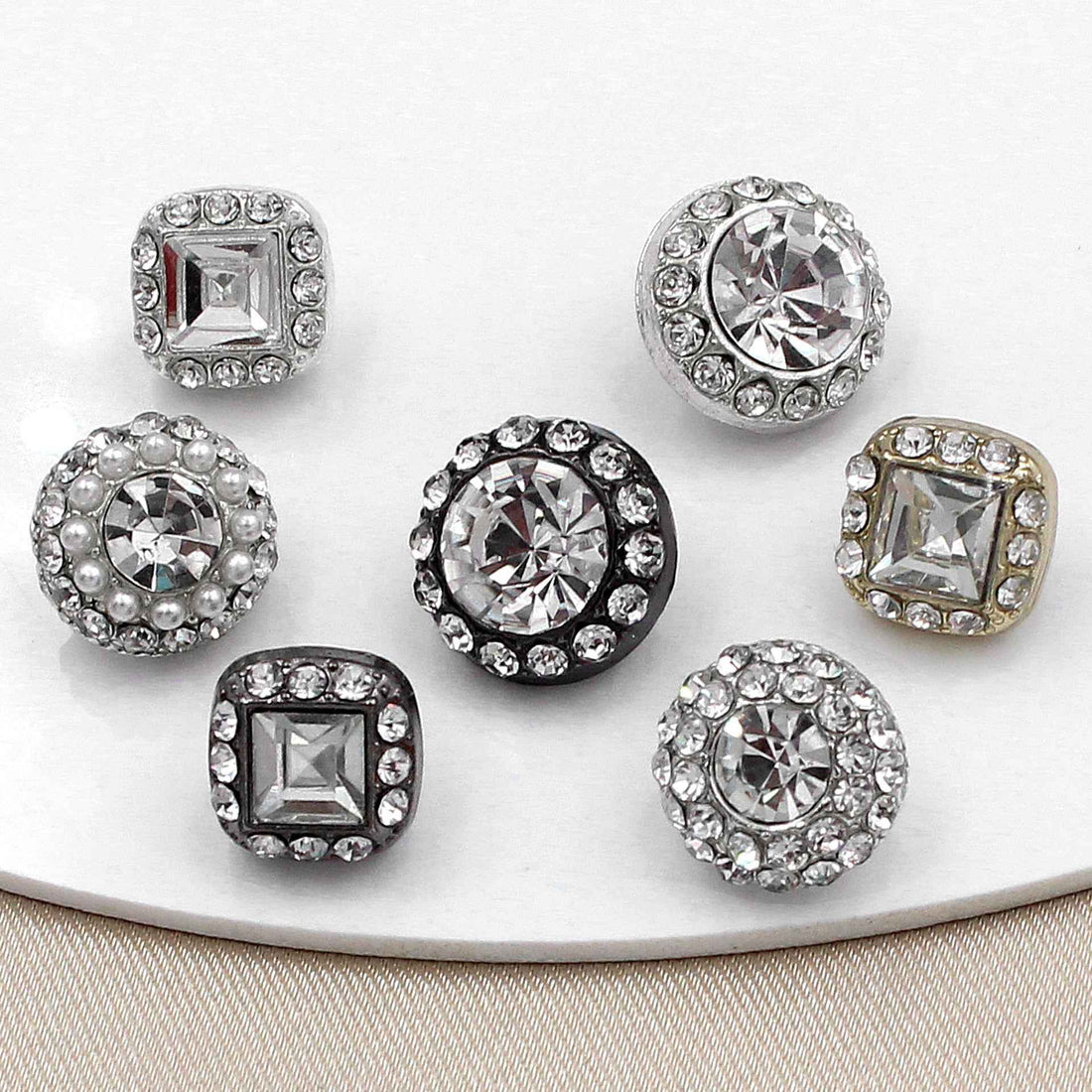 20mm Duté Geometrické Kulaté Knoflíky s Kamínky ze Slitiny na Šití 12ks